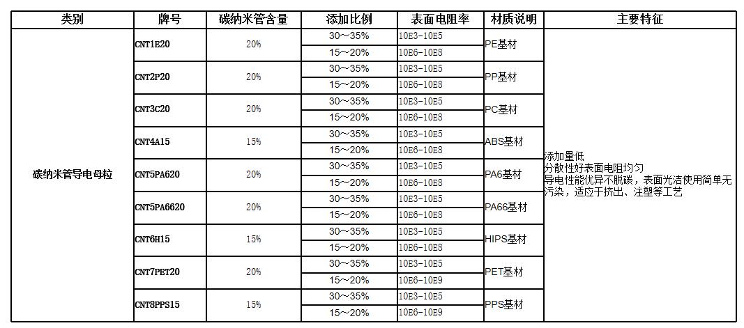 » 碳纳米管导电母粒